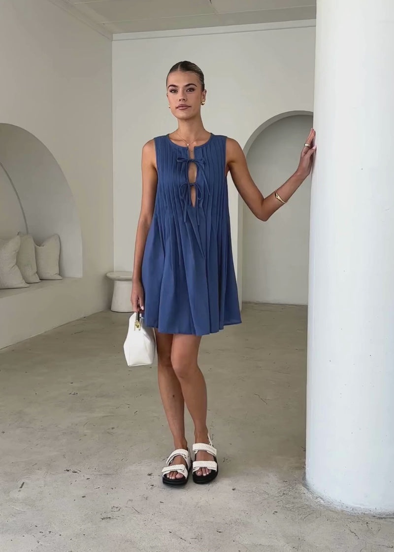 Say hello to your new favourite dress! The Tiana Dress in Denim Blue is effortlessly stylish and super versatile. Imagine styling it with a soft French braid tied with a dainty ribbon, gold hoop earrings, a mini crossbody bag, and some strappy silver sandals. It’s a look that works for brunch, shopping, or just turning heads wherever you go.
