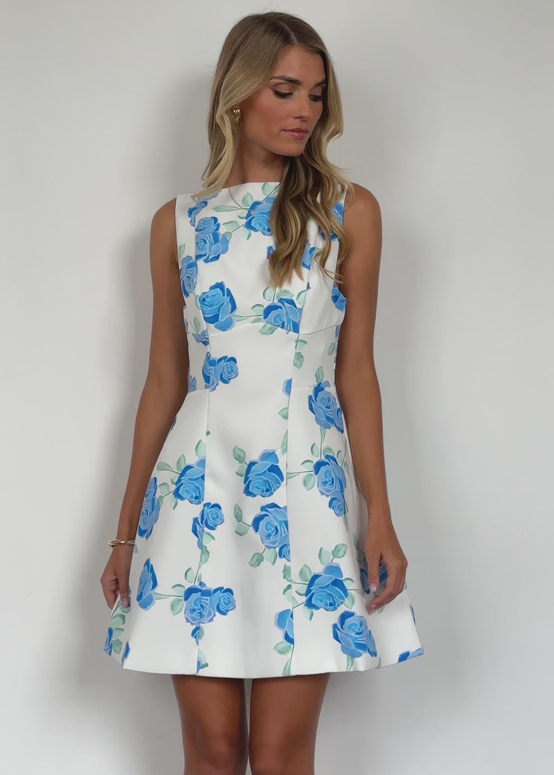 Brighten up your wardrobe with the Clarissa Dress in Azure Floral. With its breezy fit and fresh floral print, it’s a go-to for garden parties, beach strolls, or casual lunches. Pair it with espadrilles, a straw bag, and gold accents for an effortlessly charming look.