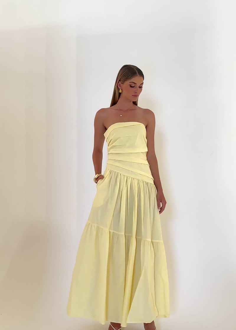 Eye-catching and effortless, the Abie Strapless Maxi Dress - Banana is made for holiday escapes, garden parties and summer soirées. Pair with wedges and statement earrings or keep it casual with slides and a raffia bag.