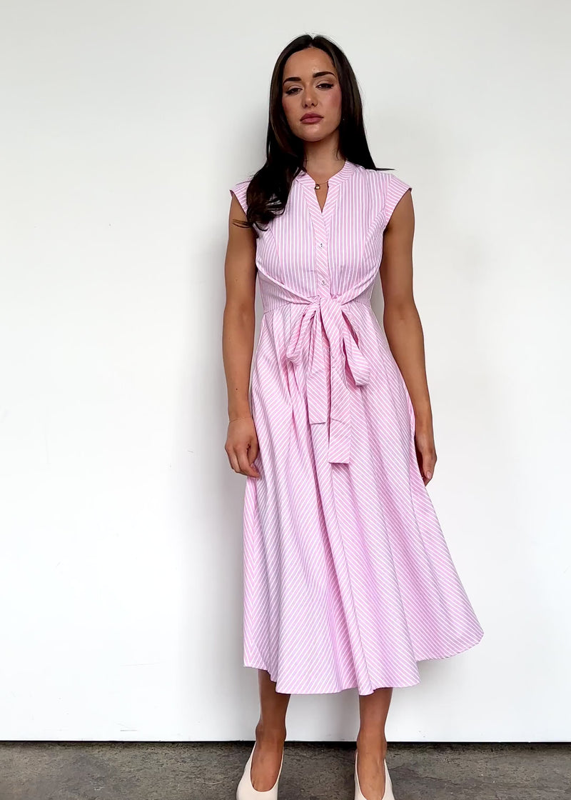 Keep it fun and fresh in the Adelle Midi Dress in baby pink.