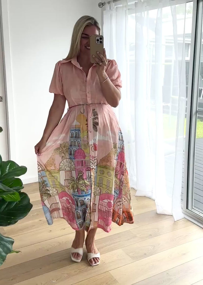 Bring holiday energy anywhere with the Allita Maxi Dress – Havana Pink. Perfect for resort dinners, garden parties, or daytime celebrations, pair with wedges and statement earrings.