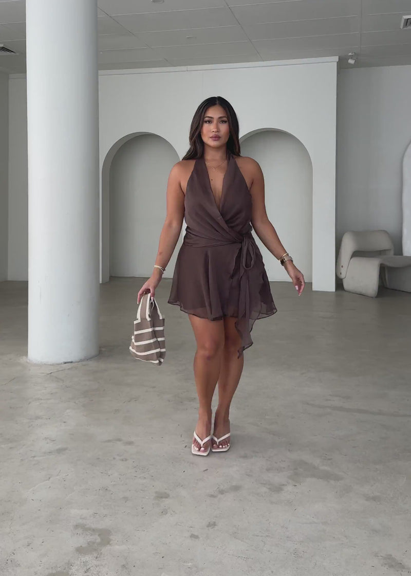 Turn heads in the Aluna Halter Dress – Chocolate. Perfect for dinners, cocktails, or warm-weather parties, pair with heels and gold jewellery for a polished finish.