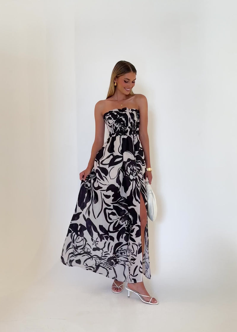 Elegant and confident, the Aspa Strapless Maxi Dress – Black Floral is perfect for events, evening celebrations, or weddings. Pair with statement earrings and heels for a refined finish. Tap to shop and make a bold, floral statement.