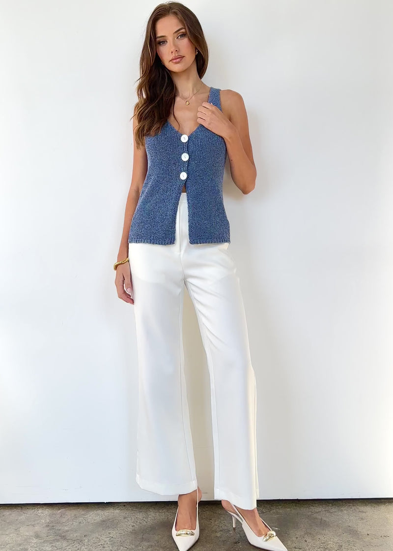 Polished yet comfy, the Avant Knit Top - Navy is a wardrobe win for every season. Pair with tailored trousers and loafers for the office, or denim skirts and sandals for weekends. Perfect for layering in winter or wearing solo through spring and summer.