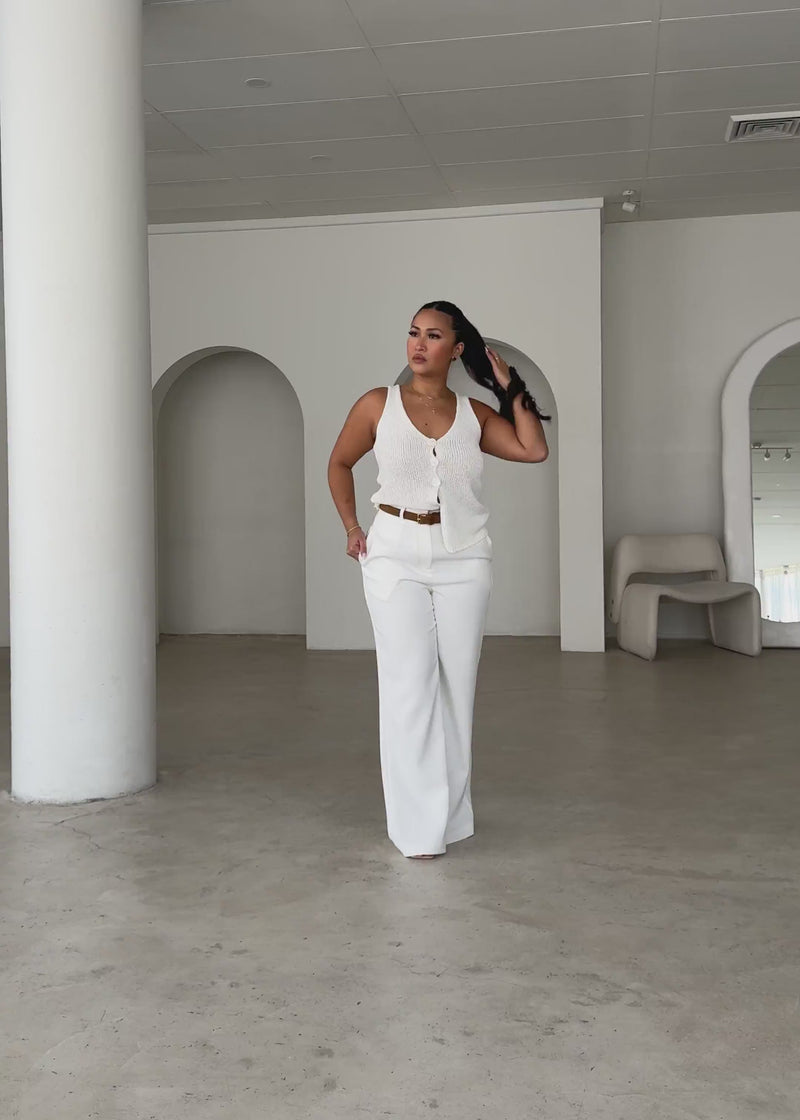 Clean and effortless, the Avant Knit Top - Off White slips into any look with ease. Style it with tailored trousers and loafers for a sleek office vibe, or pair with denim shorts and sandals for off-duty days. Layer under a blazer for an instant smart upgrade.