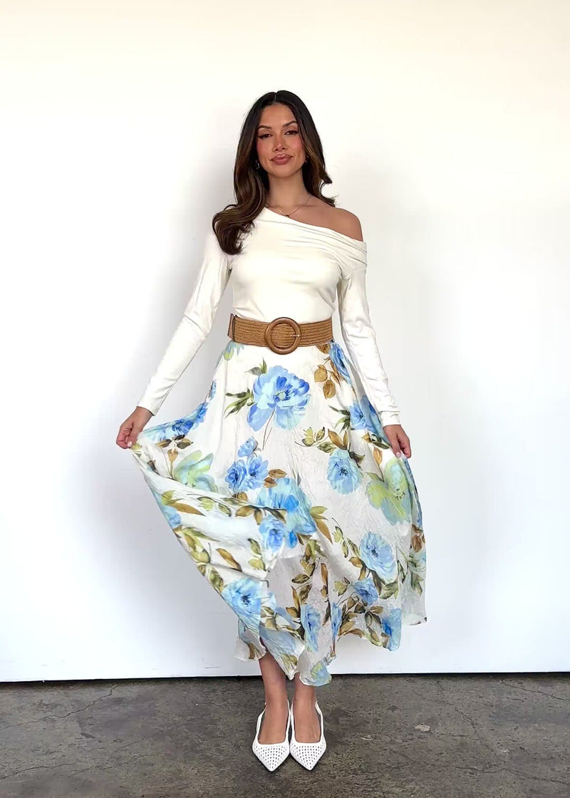 Twirl-worthy and timeless, the Catana Maxi Skirt in blue floral is your go-to for sunny weekends and spring getaways. Pair it with the matching Catana Shirt or a white cami and sandals for a breezy, put-together look.