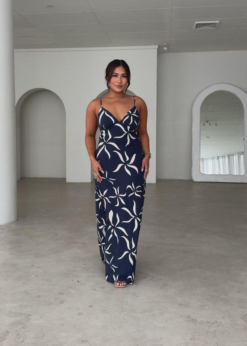 A statement piece with effortless charm. The Cavalier Maxi Dress in Navy Ayana features a flowing silhouette and delicate details that make it perfect for day-to-night dressing. Style it with sandals and gold jewellery for an elevated yet relaxed look.