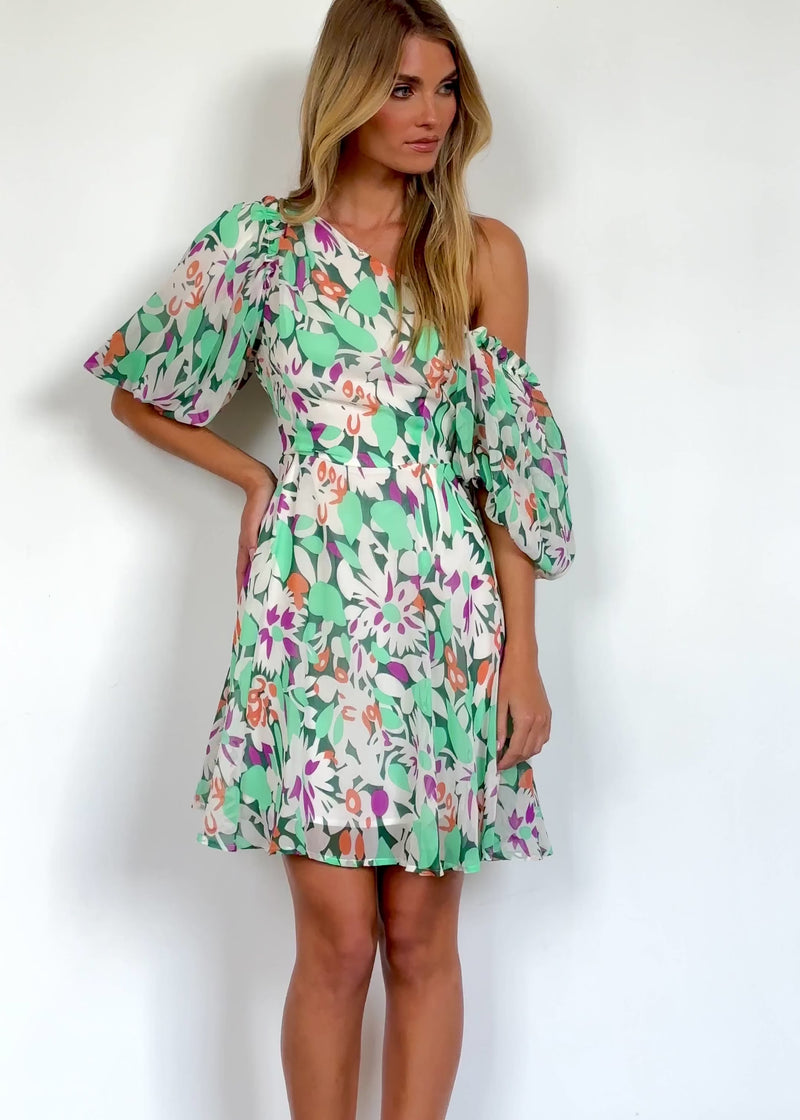 Bring effortless elegance to your wardrobe with the Cavo Off Shoulder Dress in Rio Green. Pair it with soft curls, heeled sandals, and a minimalist clutch. Finish with simple gold jewellery for a refined touch.