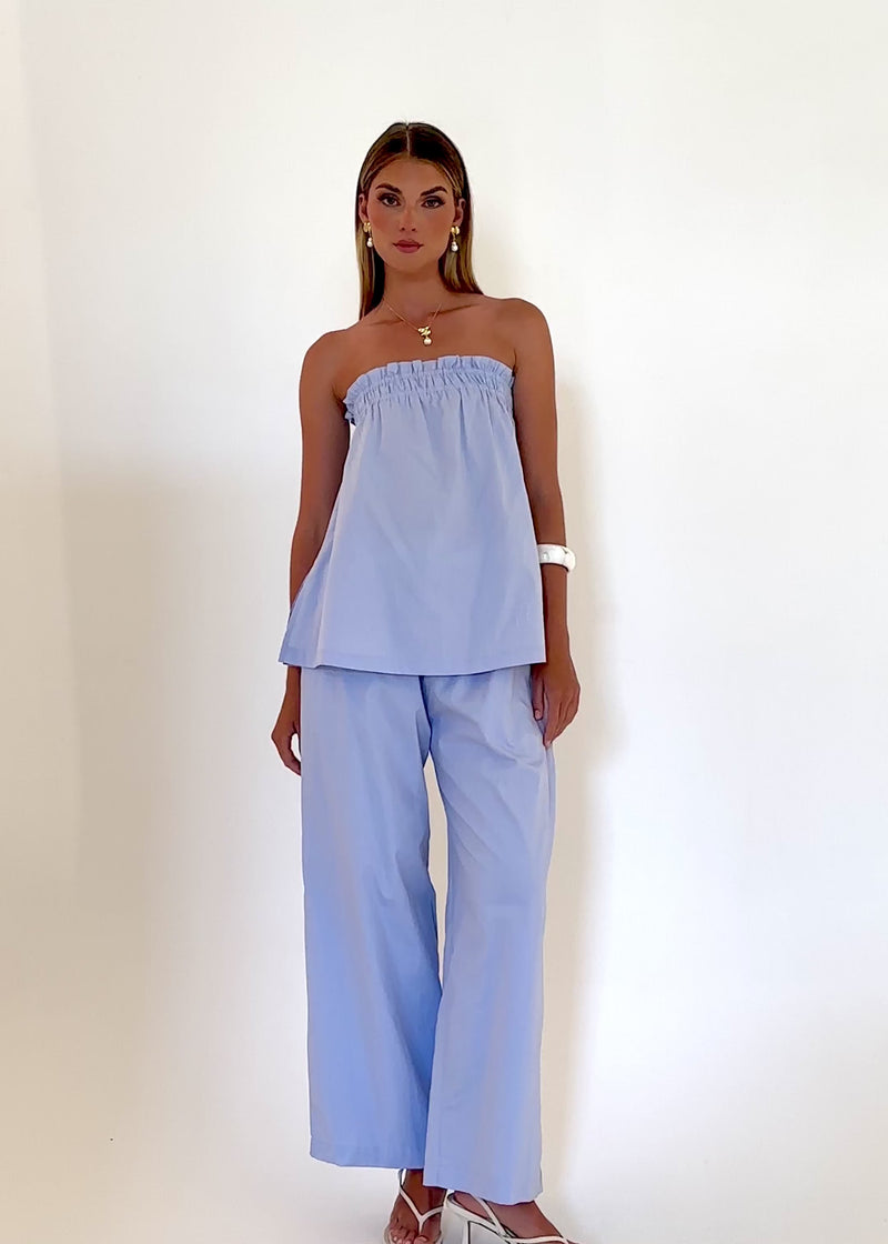 Two-piece perfection, the Christabel Set in Baby Blue blends sweet and chic. Pair with white trainers for daytime or heeled mules and a clutch for dinners.