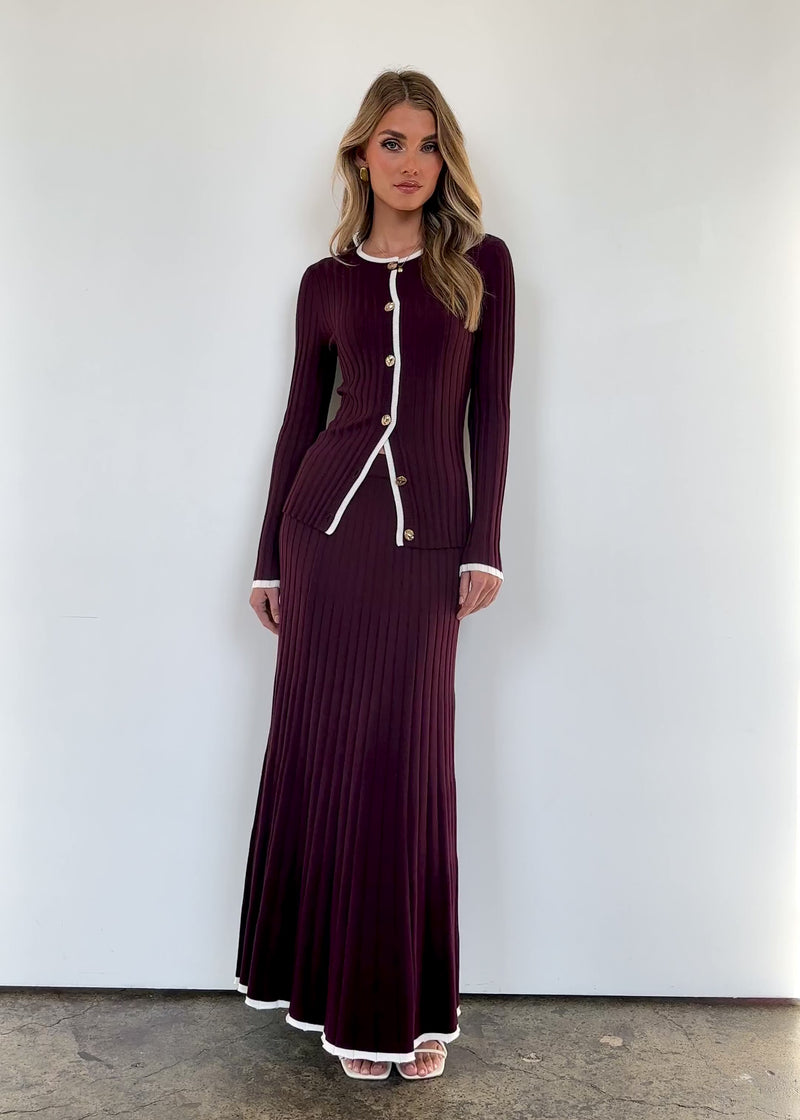 Textured and tonal, this midi skirt shines best with its matching knit top. Or try it with a basic tank and fresh white trainers for casual cool.