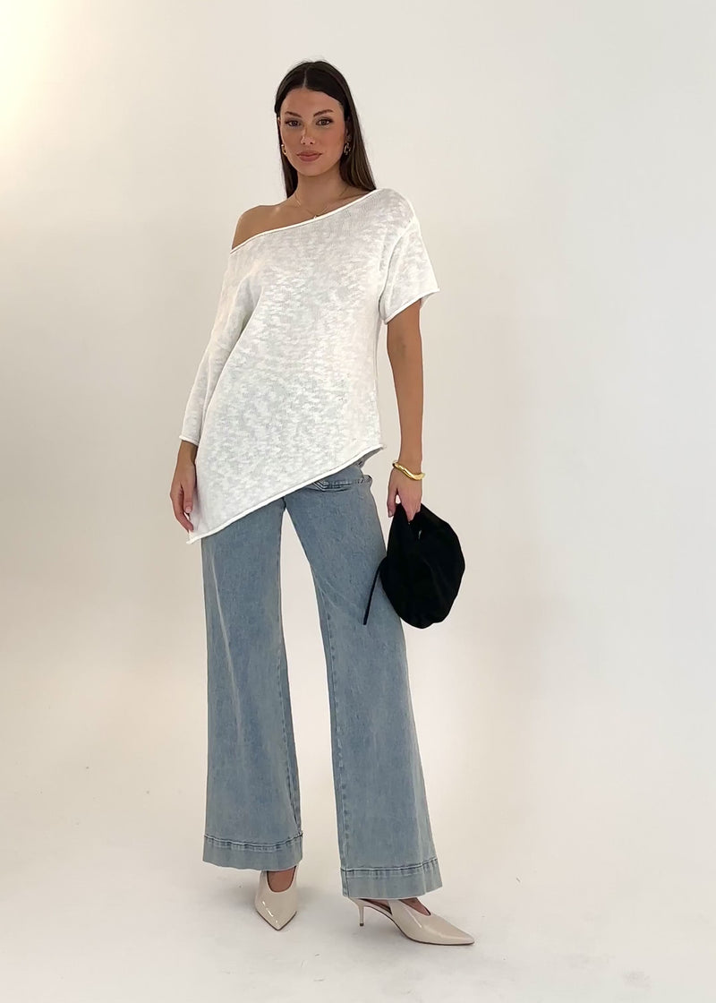 A true wardrobe staple, the Elea Drop Shoulder Knit Top - Off White pairs easily with everything from denim to tailored pants or printed skirts. Perfect for layering all year round.
