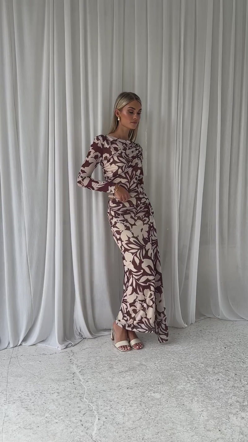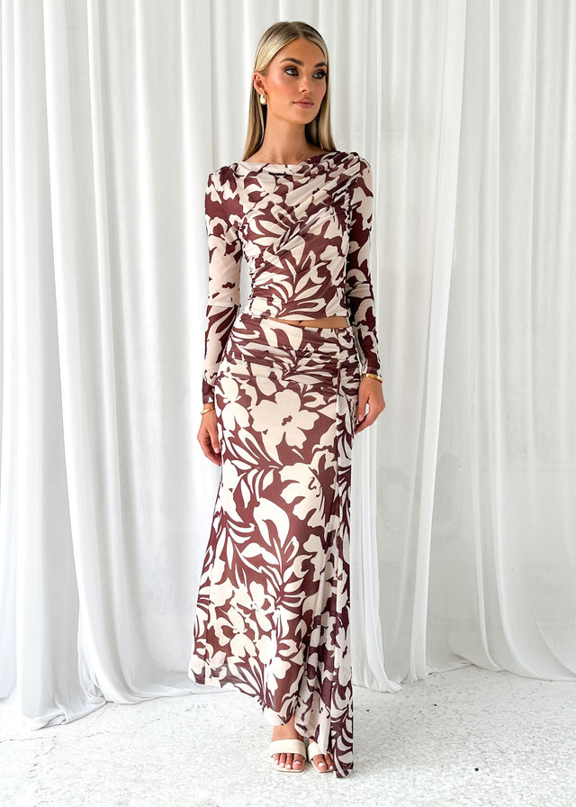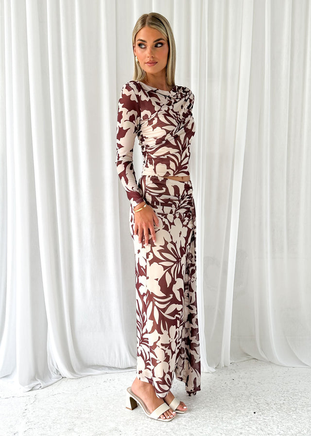 A dreamy blend of elegance and edge, the Eyso Mesh Maxi Skirt in Choc Flowers is a statement piece for any wardrobe. Style it with a fitted bodysuit and heels for an elevated evening look, or pair it with a cropped knit and ankle boots for a chic, everyday ensemble.