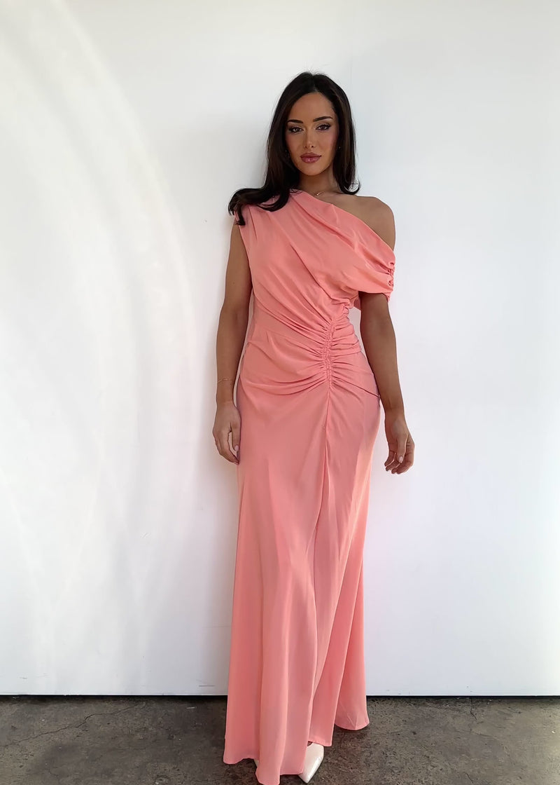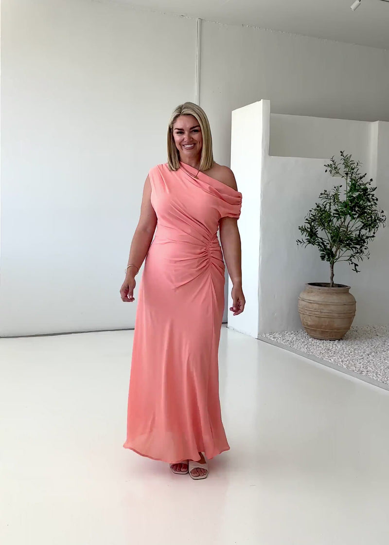 Turn heads in the Flirtini One Shoulder Maxi Dress - Peach, designed for sunset dinners, spring weddings, or cocktail nights. Style it with strappy heels and a clutch for glam, or add sandals and gold jewellery for an easy summer vibe.