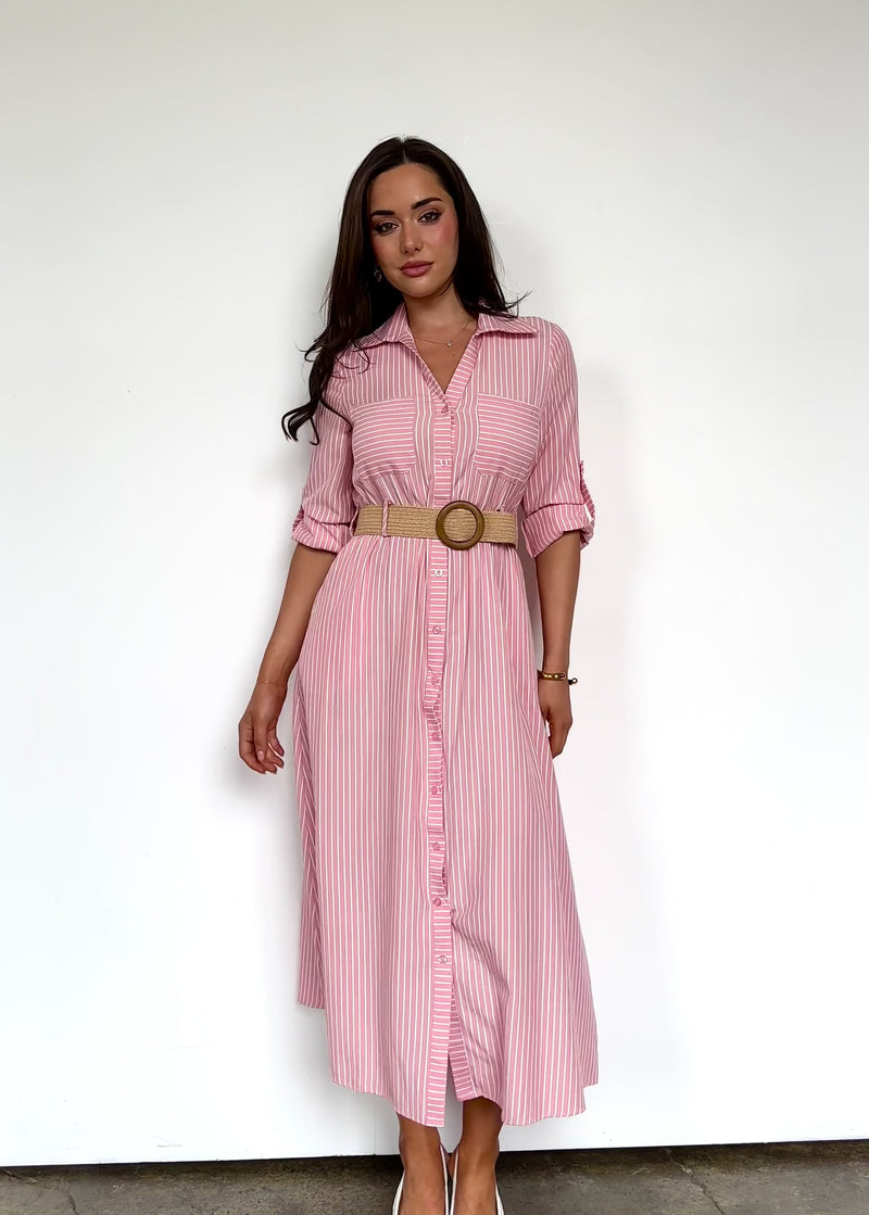 Bring home the Franzine Maxi Dress – Pink Stripe now.