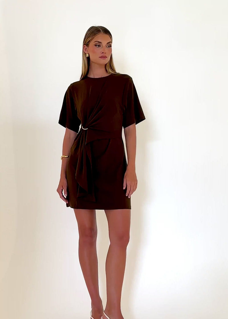 Embrace tonal dressing wearing Gabrielle Dress - Chocolate. A sophisticated piece is a winter must-have with knee-high boots and a long coat. Layer Elisha Shirt over for a casual twist. A flattering fit and rich shade makes a versatile choice for any weather.