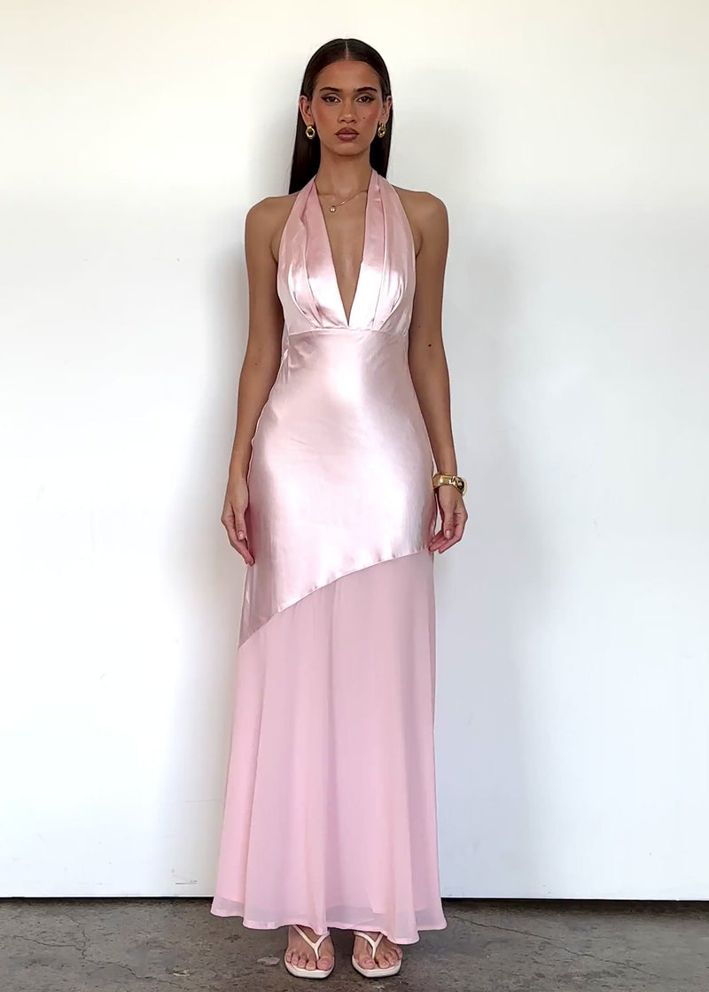 Keep it elegant in the Giovana Halter Maxi Dress in Blush. Pair with nude heels and a clutch for weddings, or style with flat sandals for brunch.