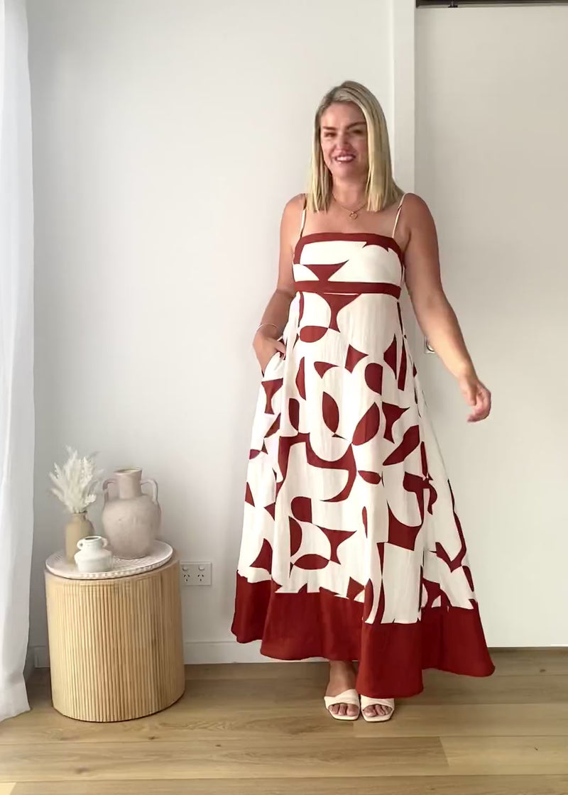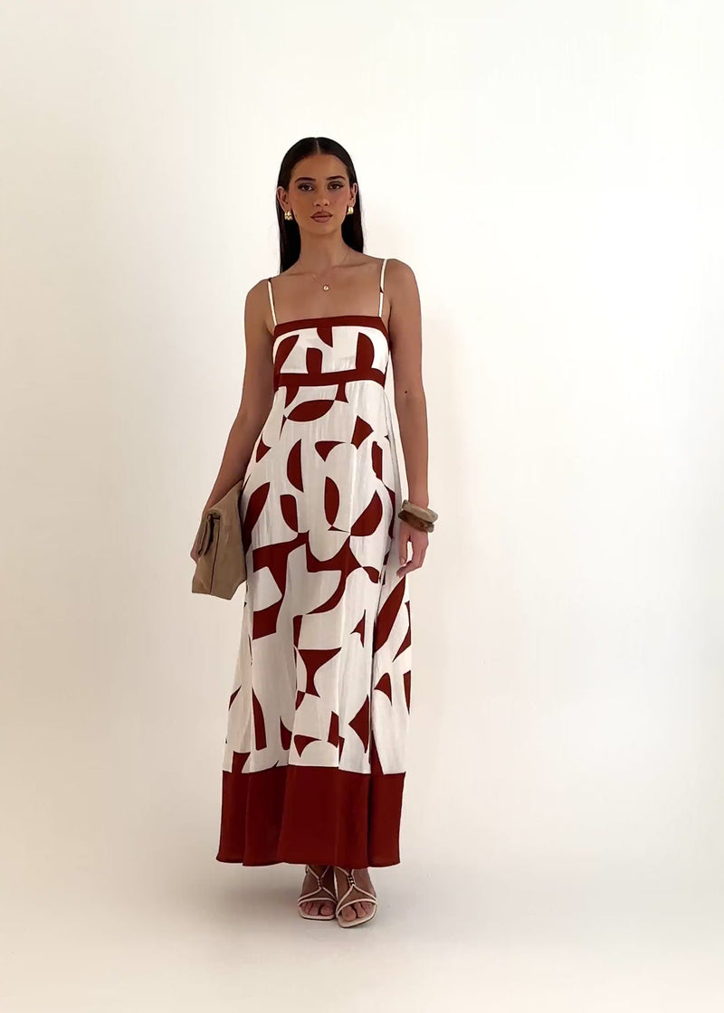 Turn heads in the Givara Maxi Dress, designed with a bold abstract print and flowy silhouette. Wear with strappy heels and a clutch for dinner plans or style with flat slides and gold hoops for everyday chic.