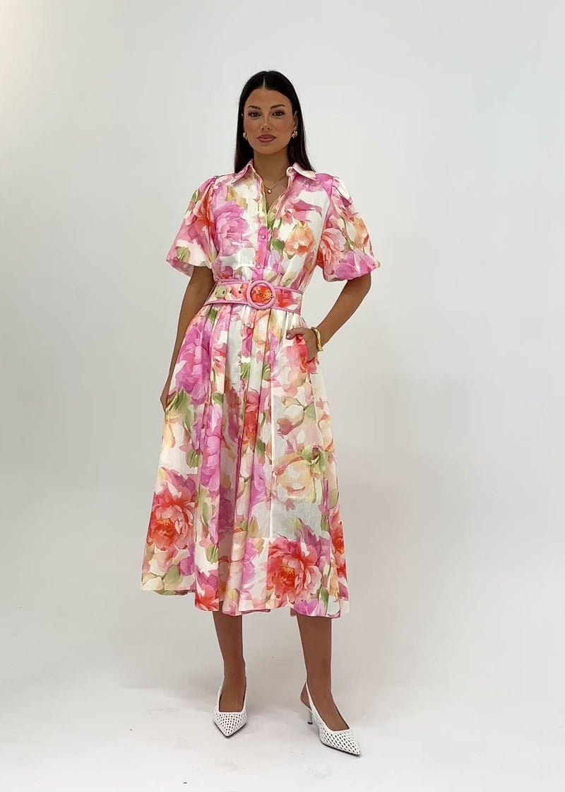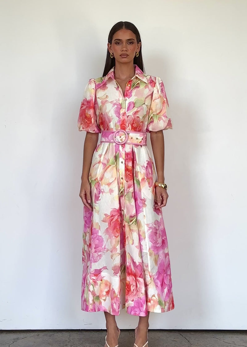 Elegant and breezy, the Hermione Maxi Dress - Pink Gardenia is perfect for garden weddings, holidays or daytime events. Style with espadrilles and a woven tote or dress it up with block heels.