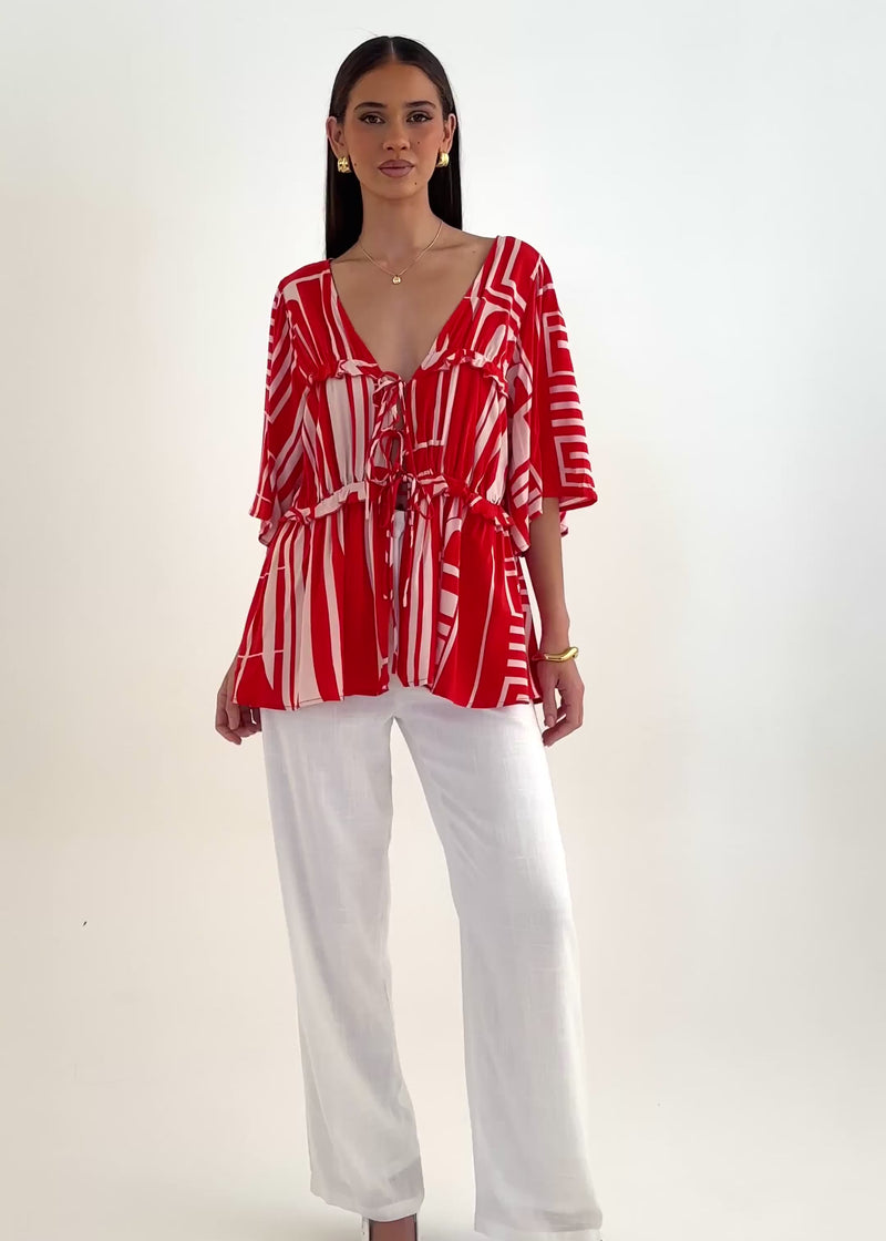 Stand out effortlessly with the Imelda Blouse in red abstract. Pair with wide-leg trousers for polished vibes or keep it laid-back with classic denim. Its bold print brings instant energy to your look, whether you’re heading to lunch dates or weekend getaways.