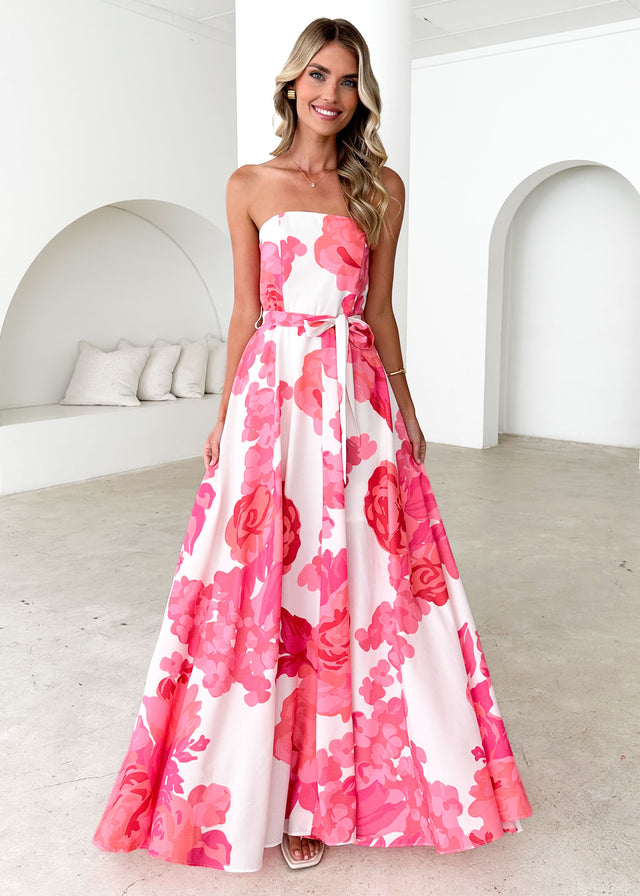 Jorgia Strapless Maxi Dress - Pink Abstract