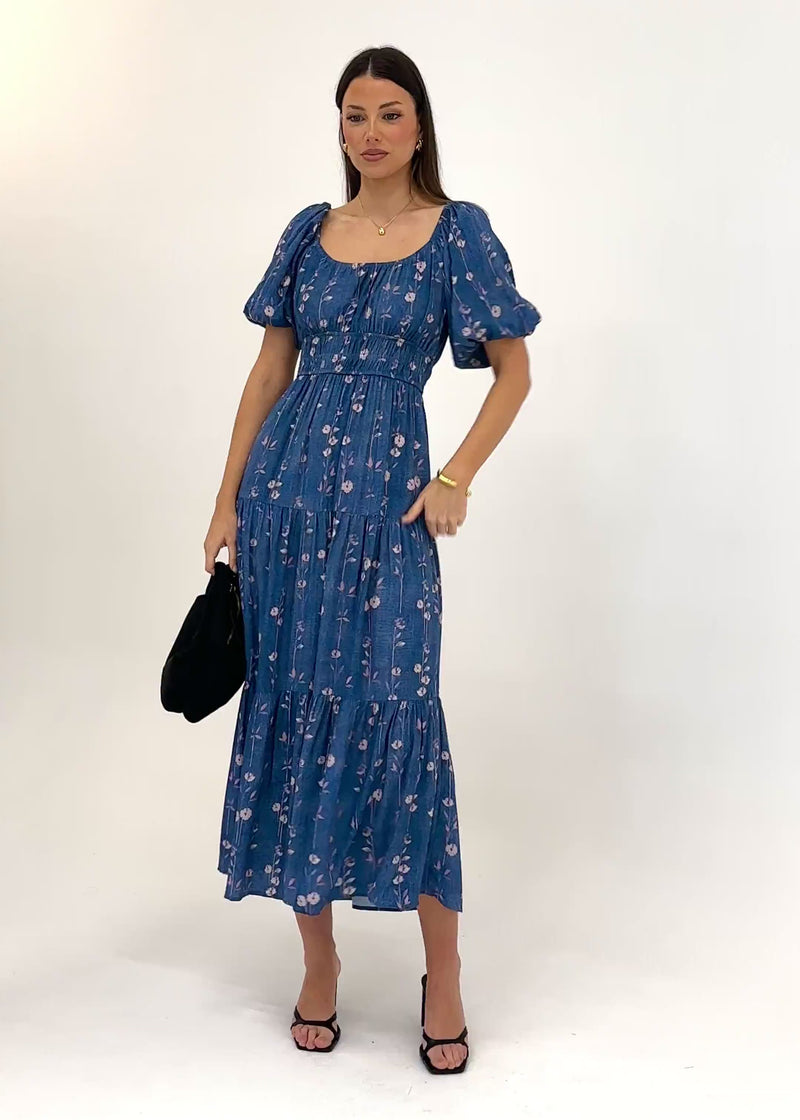 Feminine and graceful, the Kiki Off Shoulder Maxi Dress - Navy suits weddings, parties or long lunches. Style with nude heels, a clutch and minimal jewellery for an elevated look.