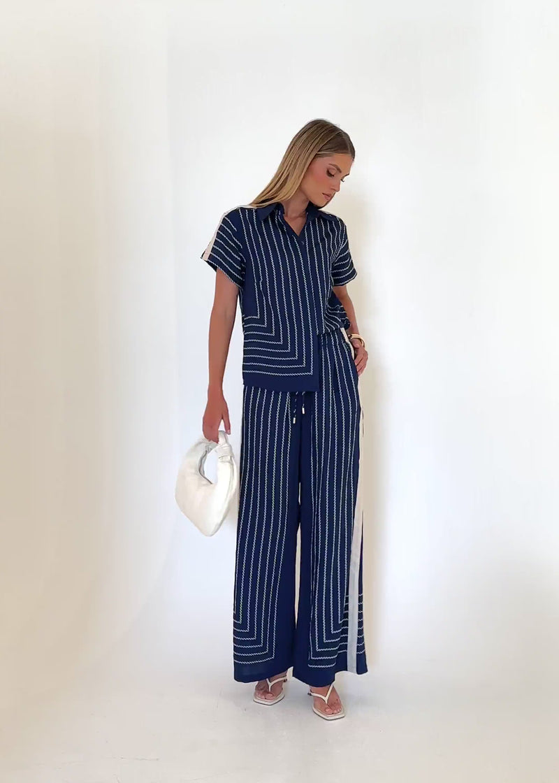 Smart yet relaxed, the Kylen Pants – Navy Rope Stripe work for workdays, brunches, or styled travel looks. Pair with the matching shirt or a neutral top. Add to cart and enjoy effortless, pulled-together styling.