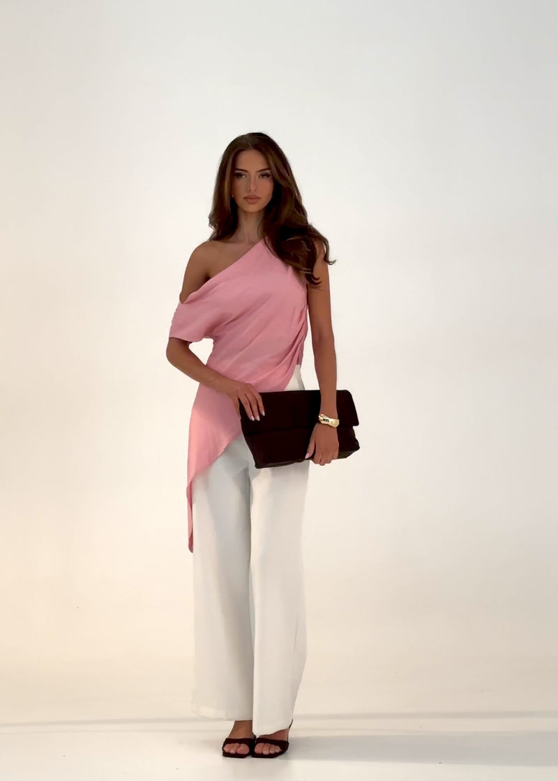 Soft yet bold, the Kylo One Shoulder Top in Pink adds a touch of playful elegance to your wardrobe. The one-shoulder design and flattering cut make it perfect for day-to-night styling. Pair it with neutral trousers and strappy heels for a fresh, feminine look.
