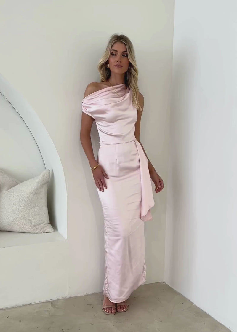 Add a refined piece to your collection with the Lexrie One Shoulder Maxi Dress, in a soft blush tone. For a sophisticated daytime event, pair it with comfortable wedge heels and a structured clutch. For an evening look, opt for elegant heeled mules and subtle accessories for a polished finish.