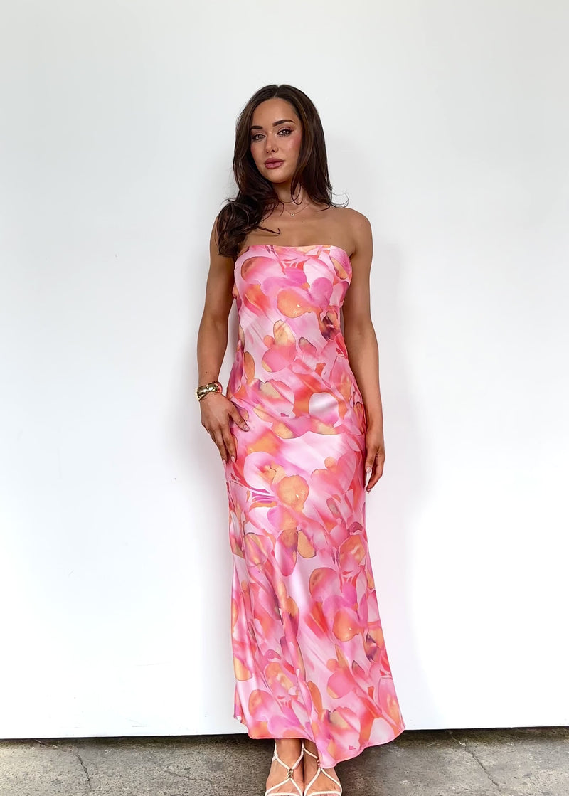 Make a statement with the Lolea Strapless Midi Dress - Pink Abstract. Pair with clear heels, a metallic clutch, and bold earrings for a fun, vibrant finish.