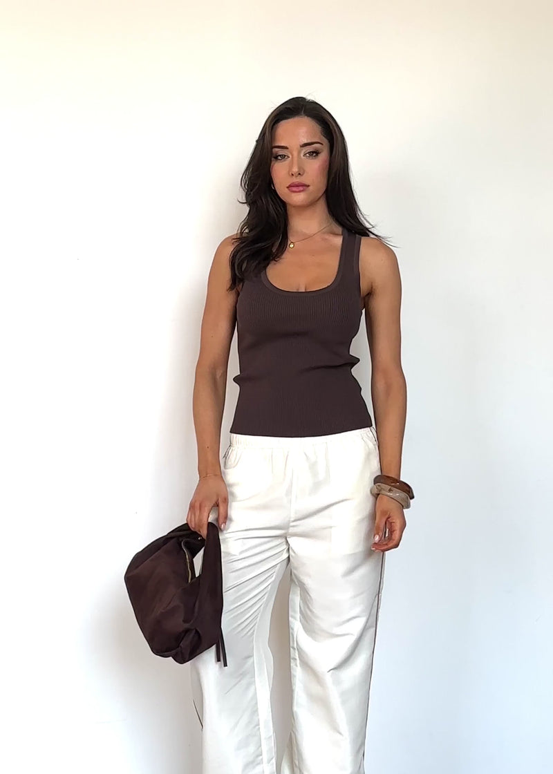 Simple and sleek, the Madelyn Tank - Espresso styles with tailored trousers and flats for workdays or with denim and sneakers for casual cool. Layer under a blazer or wear solo—versatility at its best.