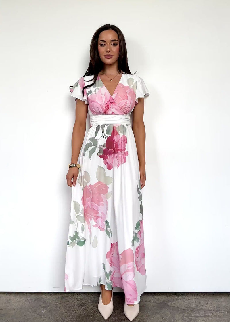 Step into effortless romance with the Marcella Maxi Dress in pink flowers.