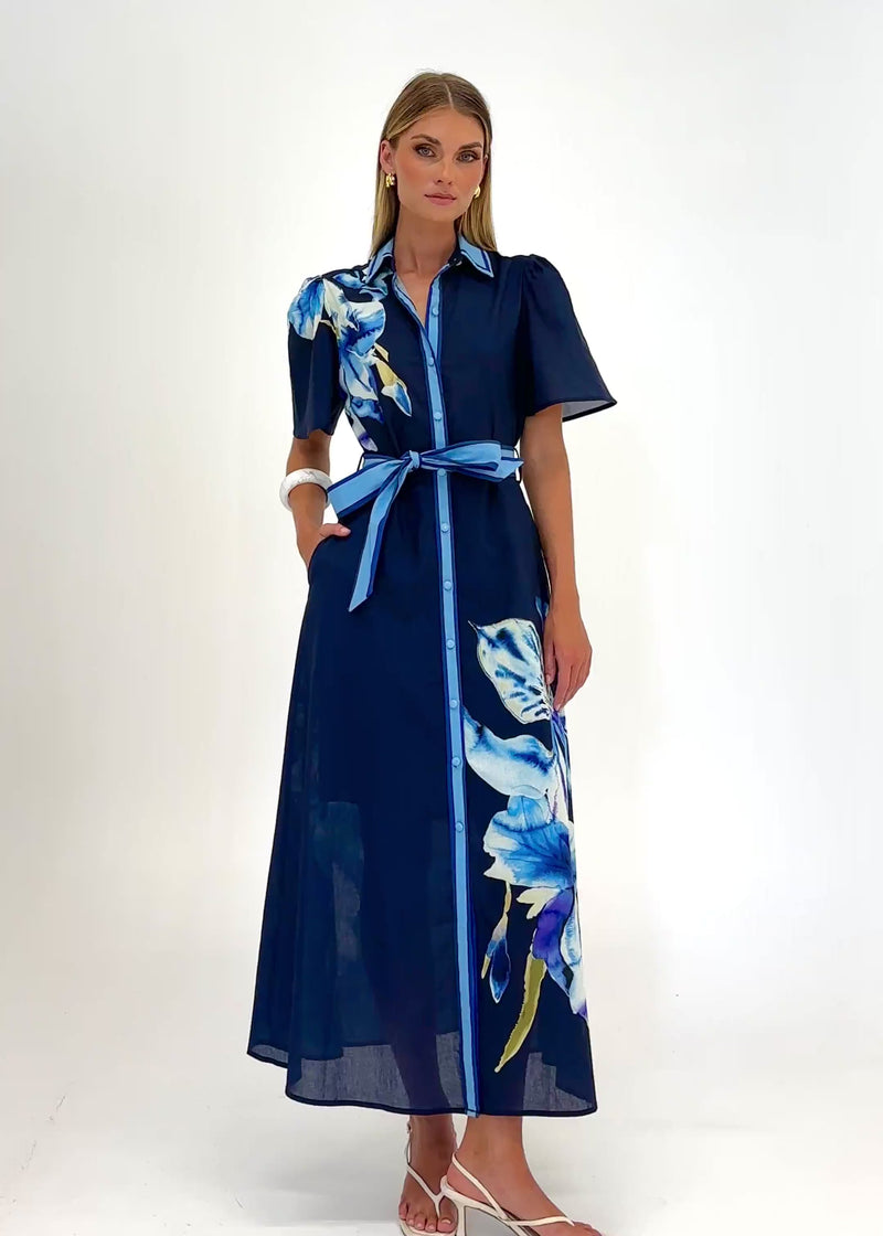 Timeless and feminine, the Marion Maxi Dress – Navy Bloom works beautifully for garden parties, lunches, or weekend gatherings. Pair with sandals, soft gold accents, and a woven clutch.