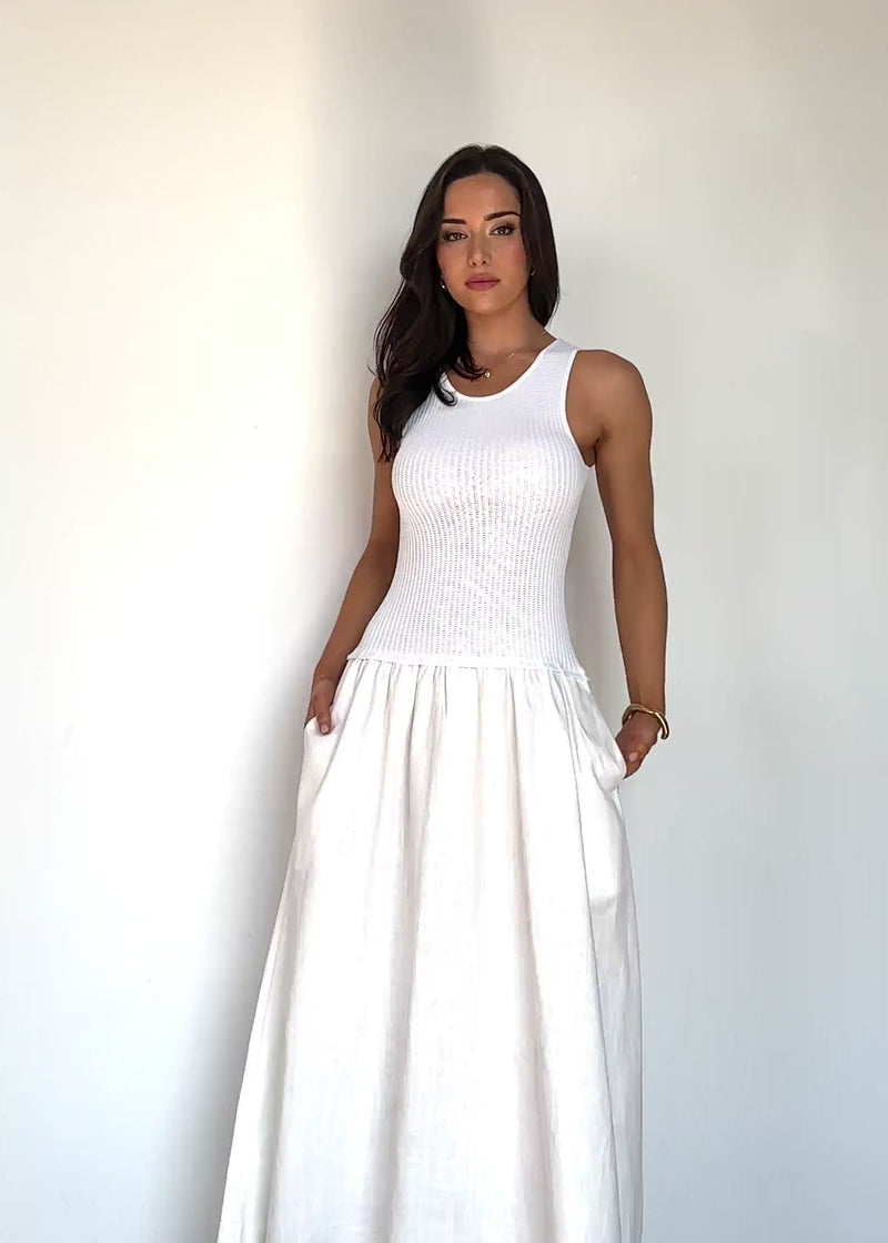 Understated elegance defines the Martine Maxi Dress - Off White. Style with nude sandals and a raffia bag for sunny afternoons or with strappy heels and layered gold jewellery for a chic evening edit.