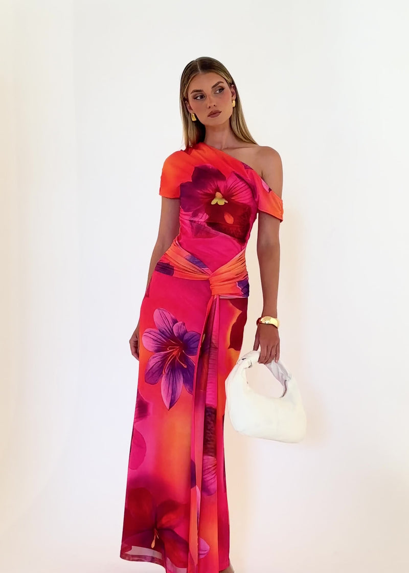 Soft and dreamy, the Monica Mesh Drop Shoulder Maxi Dress – Pink Floral shines at garden parties, brunches, or romantic dinners. Style with nude heels and gentle glam.