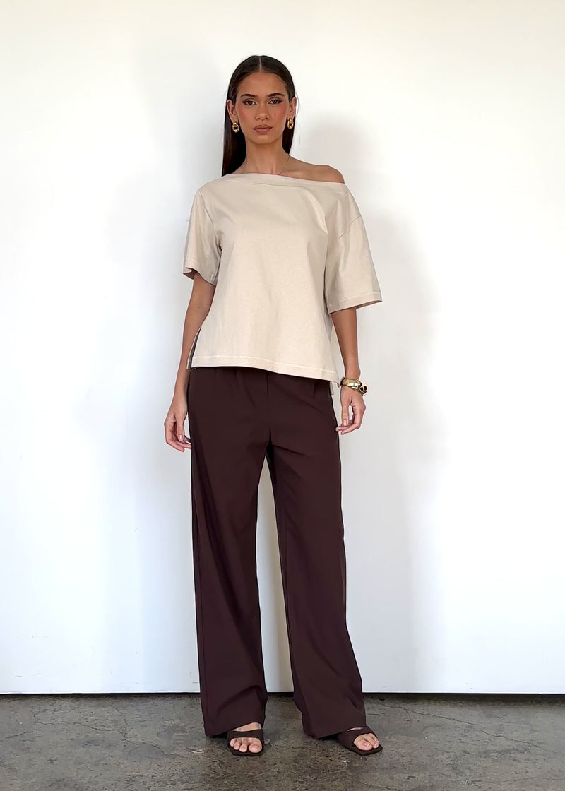 Polished and laid-back, the Myra Drop Shoulder Top in Nougat is your new neutral hero. Tuck it into linen trousers or wear it loose with denim shorts. Add gold hoops and slides for a chic finish. Myra’s that top you’ll wear on repeat — it just gets it right every time.