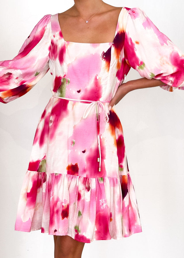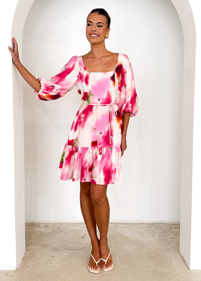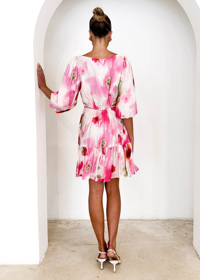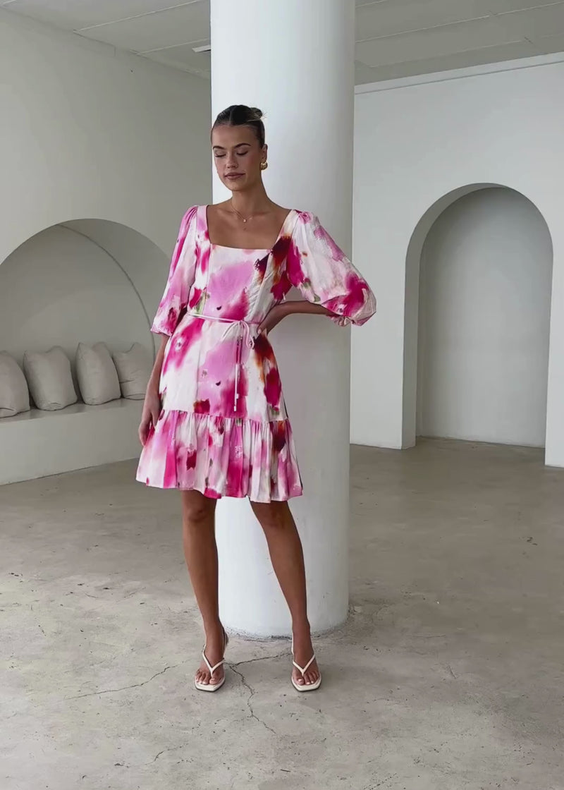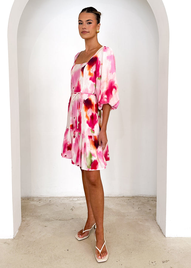 With its feminine tie detail and ruched accents, the Namisha Dress in Pink Watercolour is perfect for any occasion. Style it with soft waves and a simple pearl hair clip for a polished look. Add a gold bracelet and nude heels to complete your outfit effortlessly. Elevate your style with the Namisha Dress—shop now!
