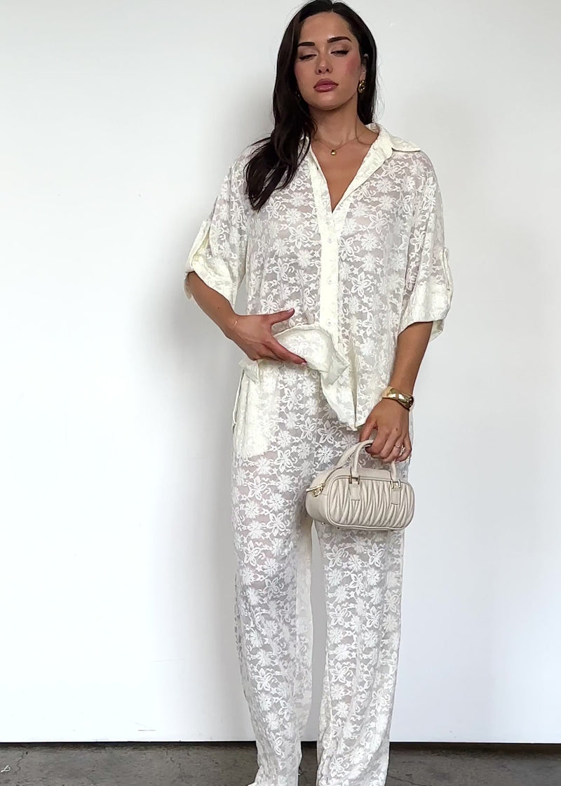 Romantic yet versatile, the Natassia Lace Shirt - Off White pairs beautifully with the matching lace pants for an elegant co-ord, or style it solo with denim and heels for a chic off-duty look. Delicate lace detail adds timeless sophistication to every outfit.