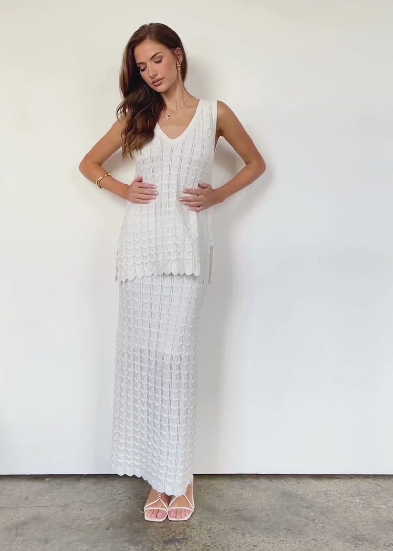 Minimal yet elevated, the Nerida Knit Top - Off White complements the matching skirt or pairs easily with linen trousers. A layering hero that works for beachside strolls, city days, and cosy evenings alike.