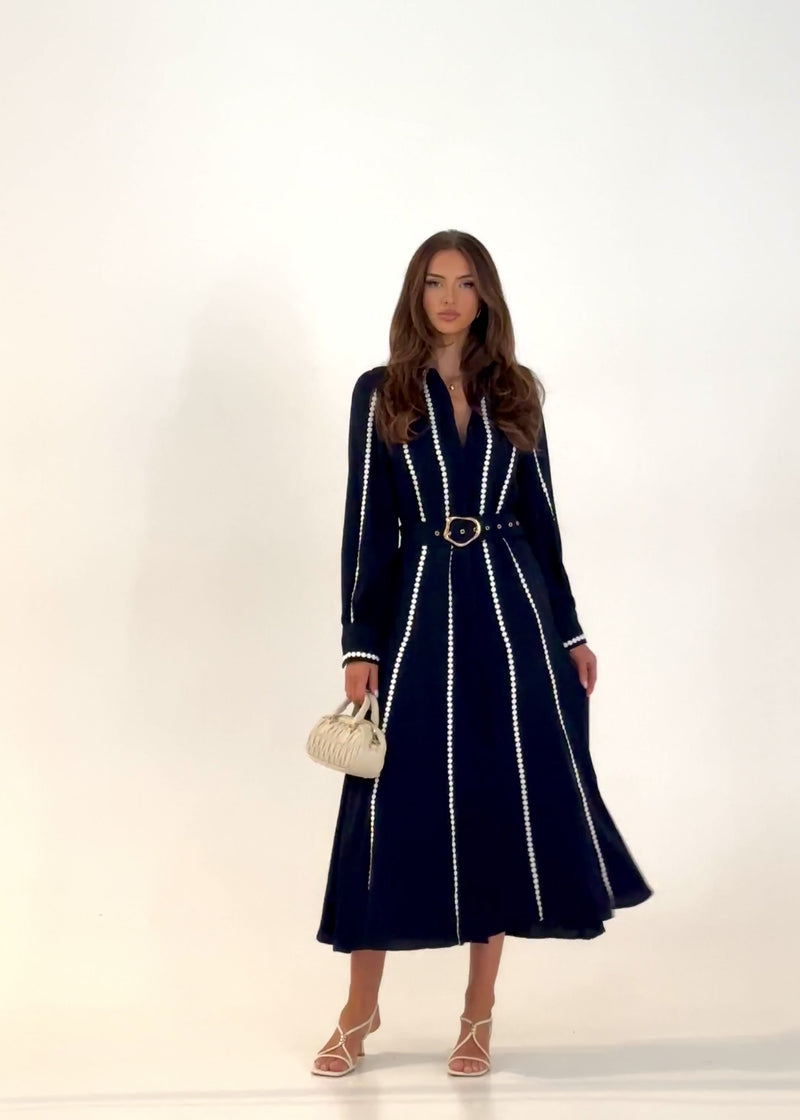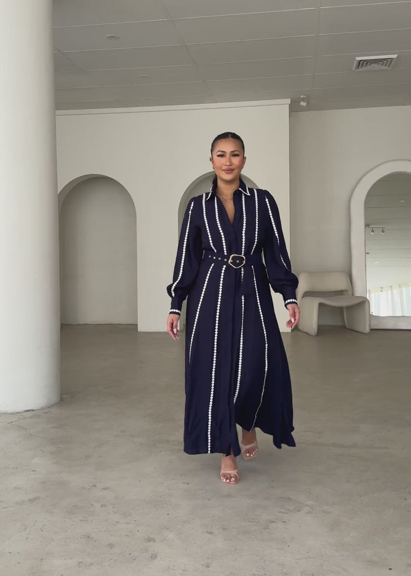 Chic and timeless, the Nevaeh Maxi Dress in Navy is a wardrobe essential for effortless elegance. Style it with gold accessories, strappy heels, and a sleek clutch for a polished evening look. For daytime, swap heels for flats and add a woven tote for a relaxed yet refined ensemble.