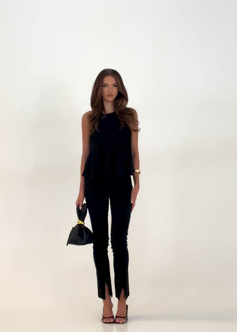 Sleek, sophisticated, and a must-have. The Norvina Pleated Top in Black is designed with delicate pleats and a fluid silhouette, making it the perfect day-to-night piece. Pair it with high-waisted trousers for a refined look or dress it down with jeans and sneakers.