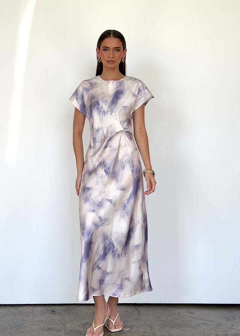 Bring the drama with the Odesza Maxi Dress – Purple Abstract. Style this printed women’s maxi with platform sandals and a sleek bun for that artsy-chic vibe.