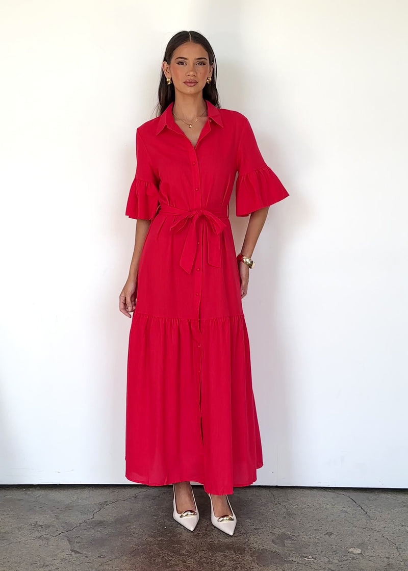 Bold and beautiful, the Payton Maxi Dress in Red brings instant confidence. Style it with metallic heels and statement earrings for evening plans or date nights. A standout piece that commands attention.