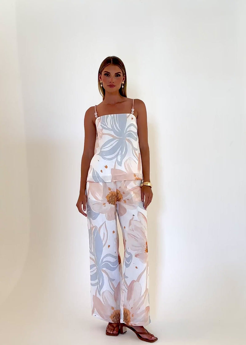 Discover effortless coordination wearing Pearla Set - Apricot Blue Floral for garden parties. Style a stunning duo together for high-impact or mix pieces with existing staples. You will love a vibrant print made for sunny days. Match with a simple sun hat to complete a beautiful floral theme for any holiday.