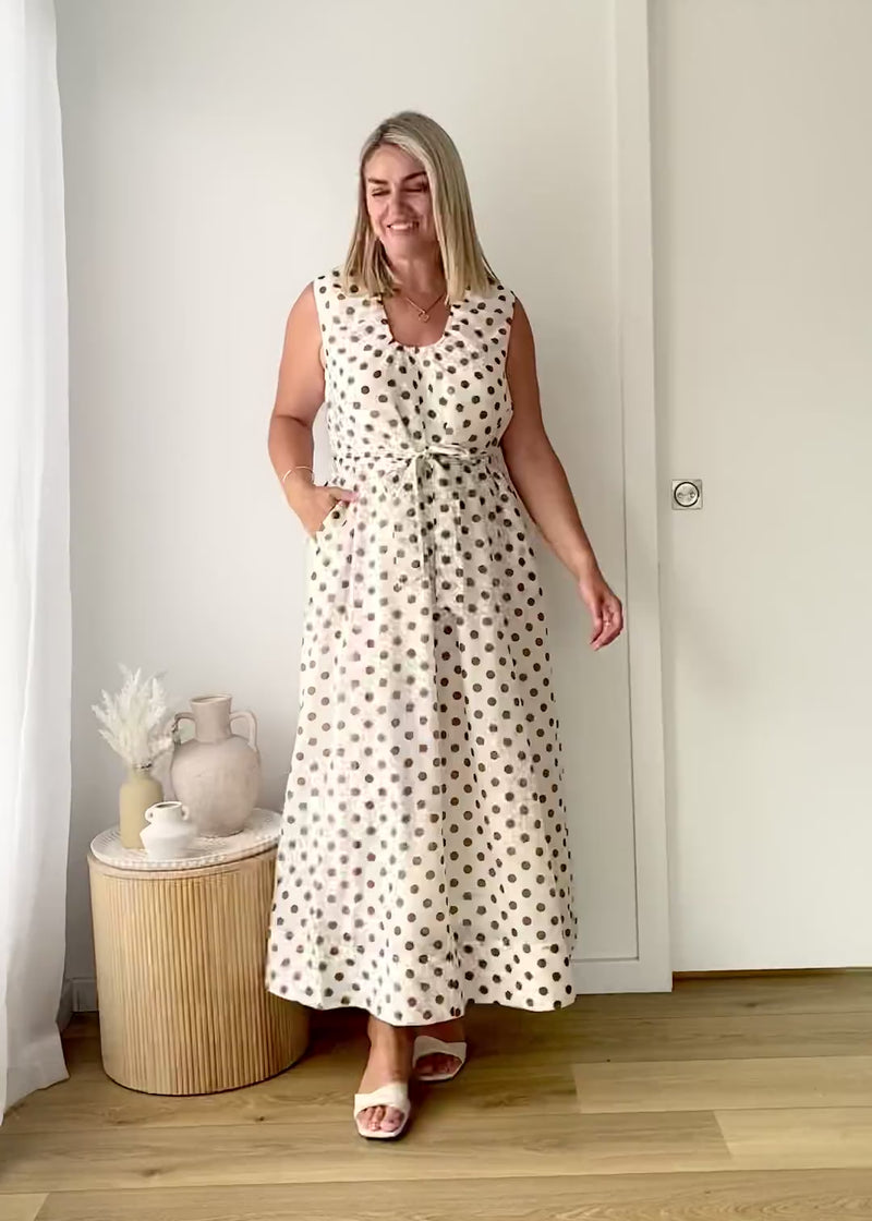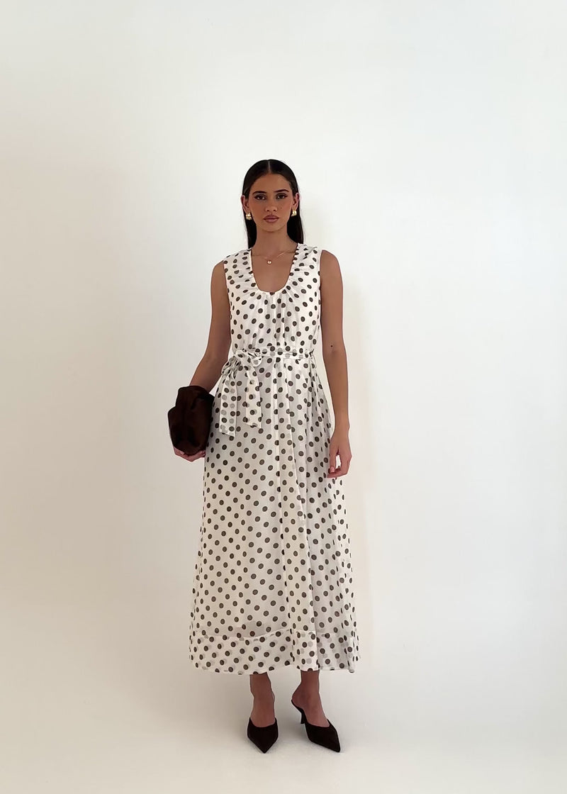 Fresh and feminine, the Poppi Maxi Dress in vanilla polka is perfect for day-to-night dressing. Wear with trainers and a crossbody for daytime strolls, or add pearl earrings and block heels for dinner plans.