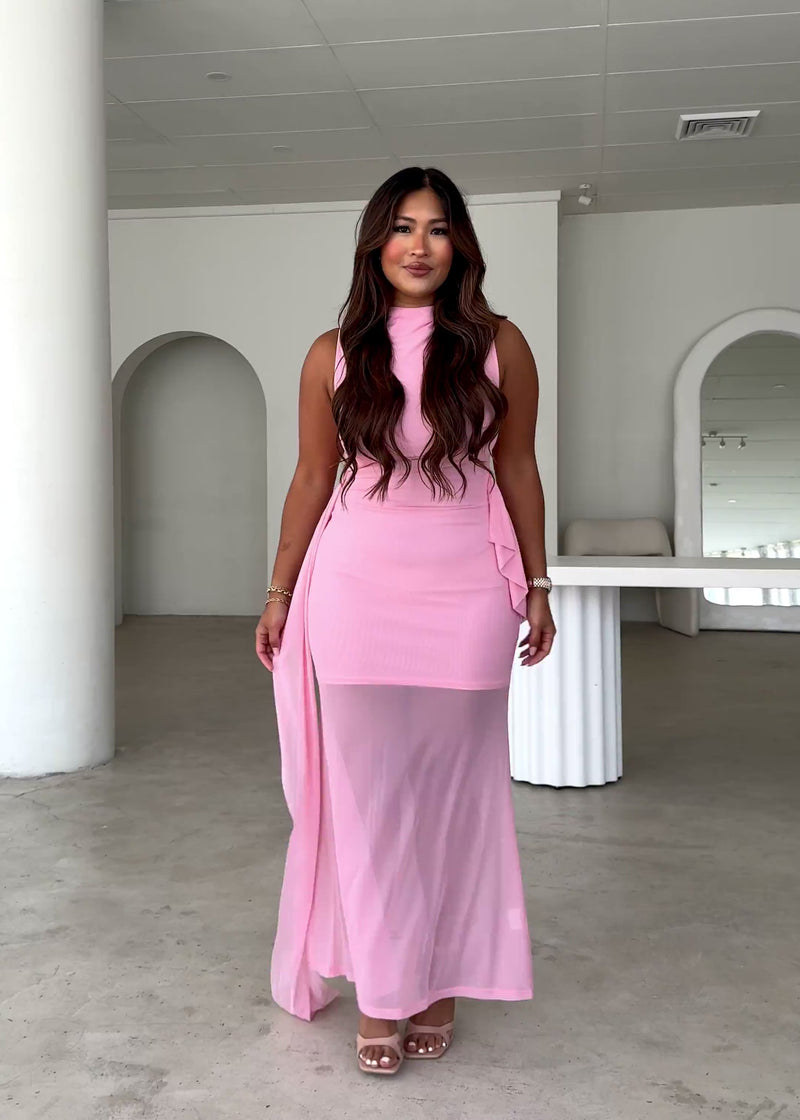 Romantic and playful, the Senorita Mesh Maxi Dress in Pink is made for parties or special occasions. Style it with barely-there heels, a clutch bag and delicate jewellery to keep the focus on the dress.