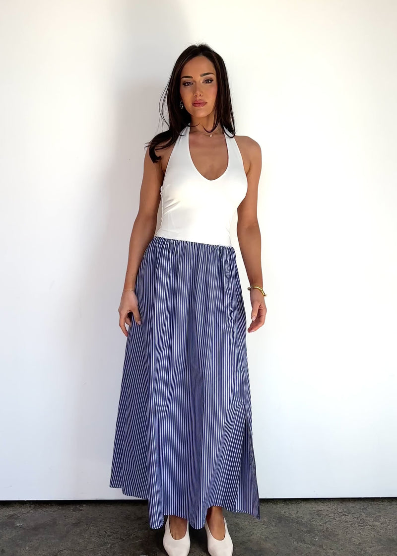 Breezy and relaxed, the Sunni Maxi Dress - Sky Stripe pairs with espadrilles and a tote for beachside days or sneakers and a denim jacket for city strolls. A timeless stripe for effortless summer style.