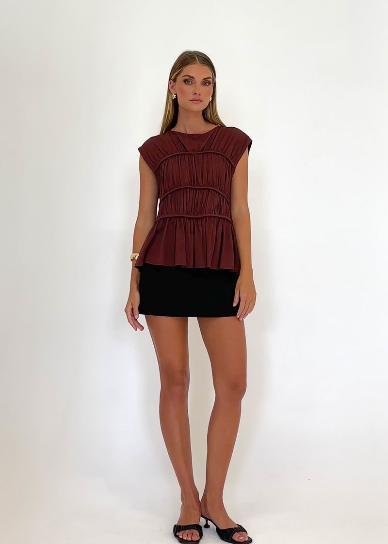 Rich and versatile, the Sunstone Pleated Top – Chocolate elevates everyday looks with ease. Style with tailored trousers, denim, or a flowy skirt for workdays or dinners.