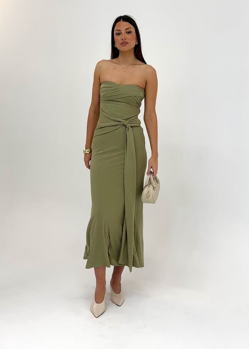 Understated yet refined, the Suzi Strapless Maxi Dress - Sage works for formal dinners, weddings and sunset soirées. Style with block heels and statement earrings, or keep it simple with slides for a relaxed summer mood.