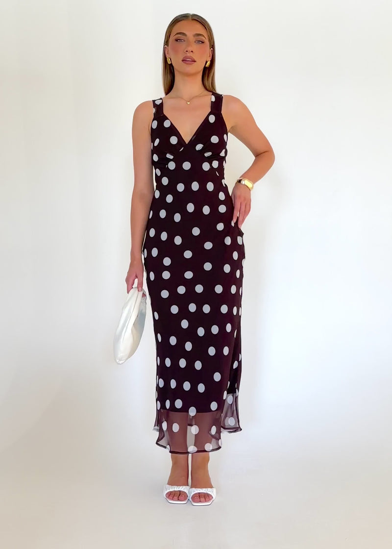 Sweet with a polished edge, the Taleena Maxi Dress – Chocolate Polka is perfect for brunches, garden parties, or warm evening plans. Style with tan heels, a mini clutch, and gold jewellery. Add to cart and enjoy effortless polka-dot charm with every step.