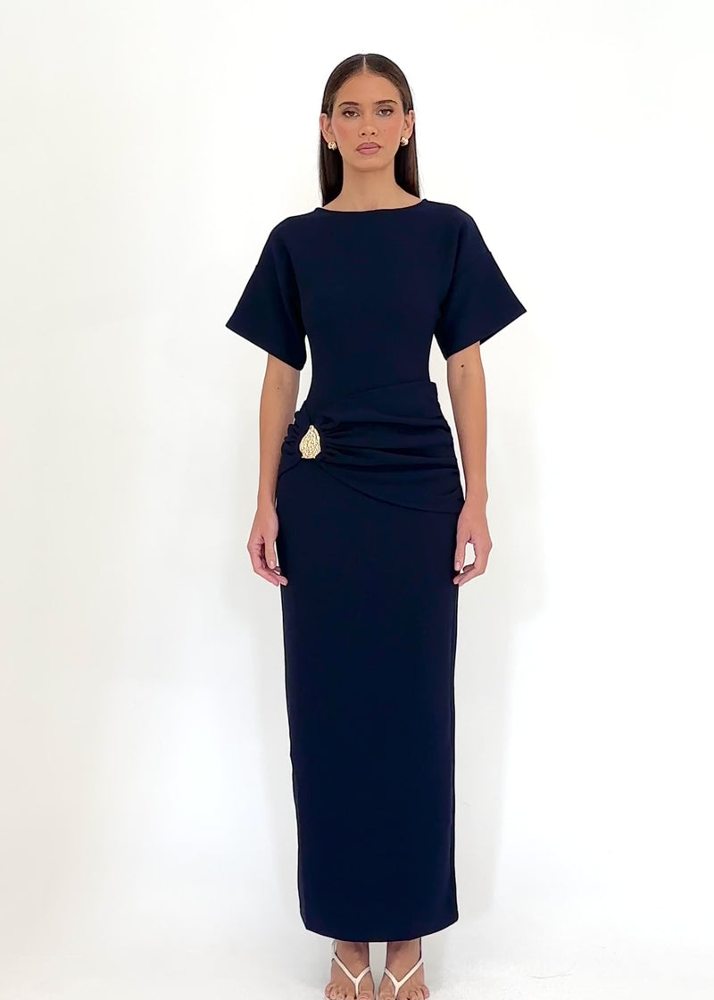 Classic navy brings a refined touch to this flowing silhouette. Pair with heels and a clutch for evening plans, or flats for daytime wear. Tallie Maxi Dress blends elegance with versatility.